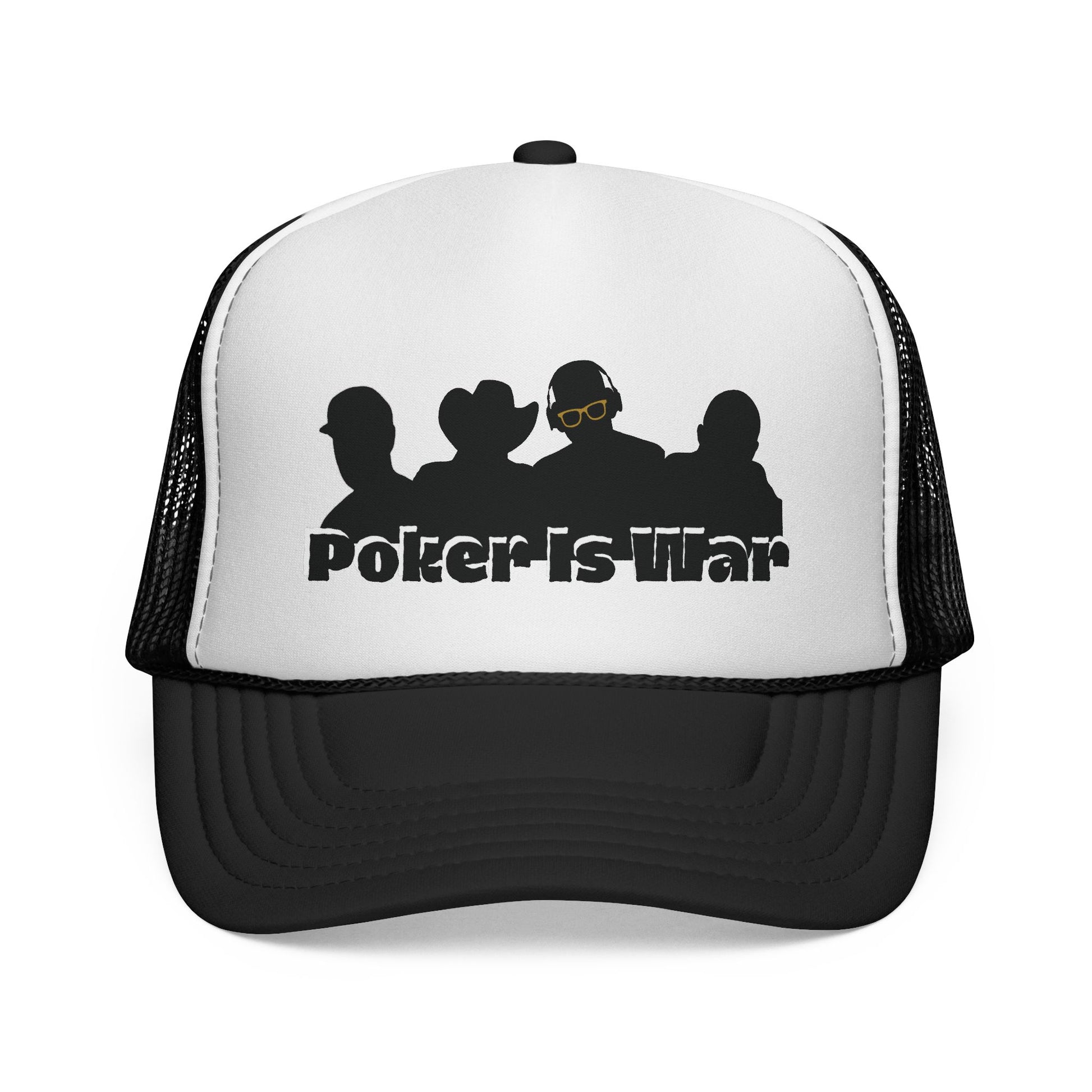 Every hand is a battle — and this Poker Is War Trucker Hat is your armor. Built for grinders who live the game, this high-quality trucker cap combines modern poker attitude with all-day comfort. The bold “Poker Is War” design captures the intensity of the grind, featuring silhouette-style player art that represents every type of competitor you’ll face on the felt.